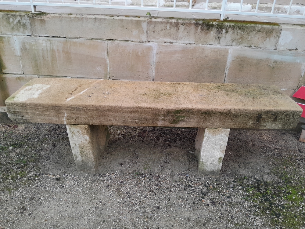 Ce banc est le point de départ de notre projet. Il se trouve dans la cour de la mairie.